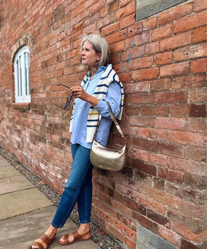J’aime faire un peu de superposition, je combinerais donc un t-shirt, un gilet ou une chemise avec une jolie veste. Je porte en principe des baskets et j’ajouterais quelques bijoux et un joli sac pour créer un look décontracté, mais soigné.